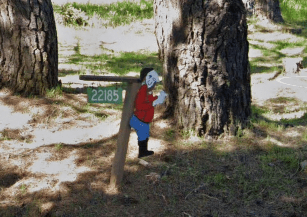 One notable and culturally ambiguous sight is the very small painting of a the “mud-flap man”, which is an inscrutable response to the nude female silhouettes on mud-flaps during the 70s and 80s. You’ll find this little buddy at the intersection of Roblar and Hensley roads.